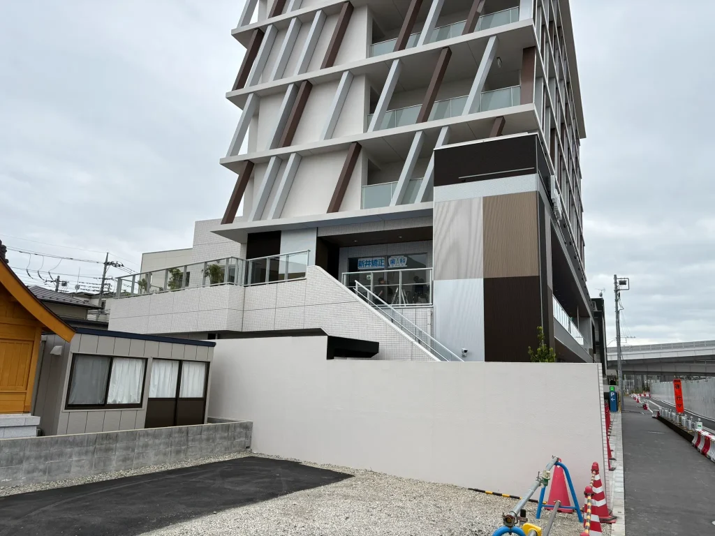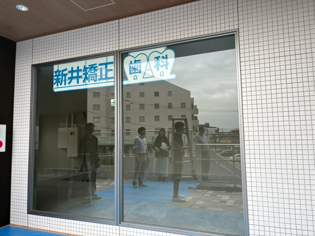所沢駅近くに建設中のビルに入る歯科医院様で、吊り下げ式サインのサイズ感を確認するためのシミュレーションを行いました。
